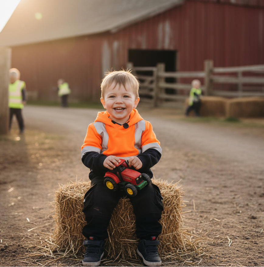 - Hi vis hoodie with reflective tape so your kids stay visible and within sight