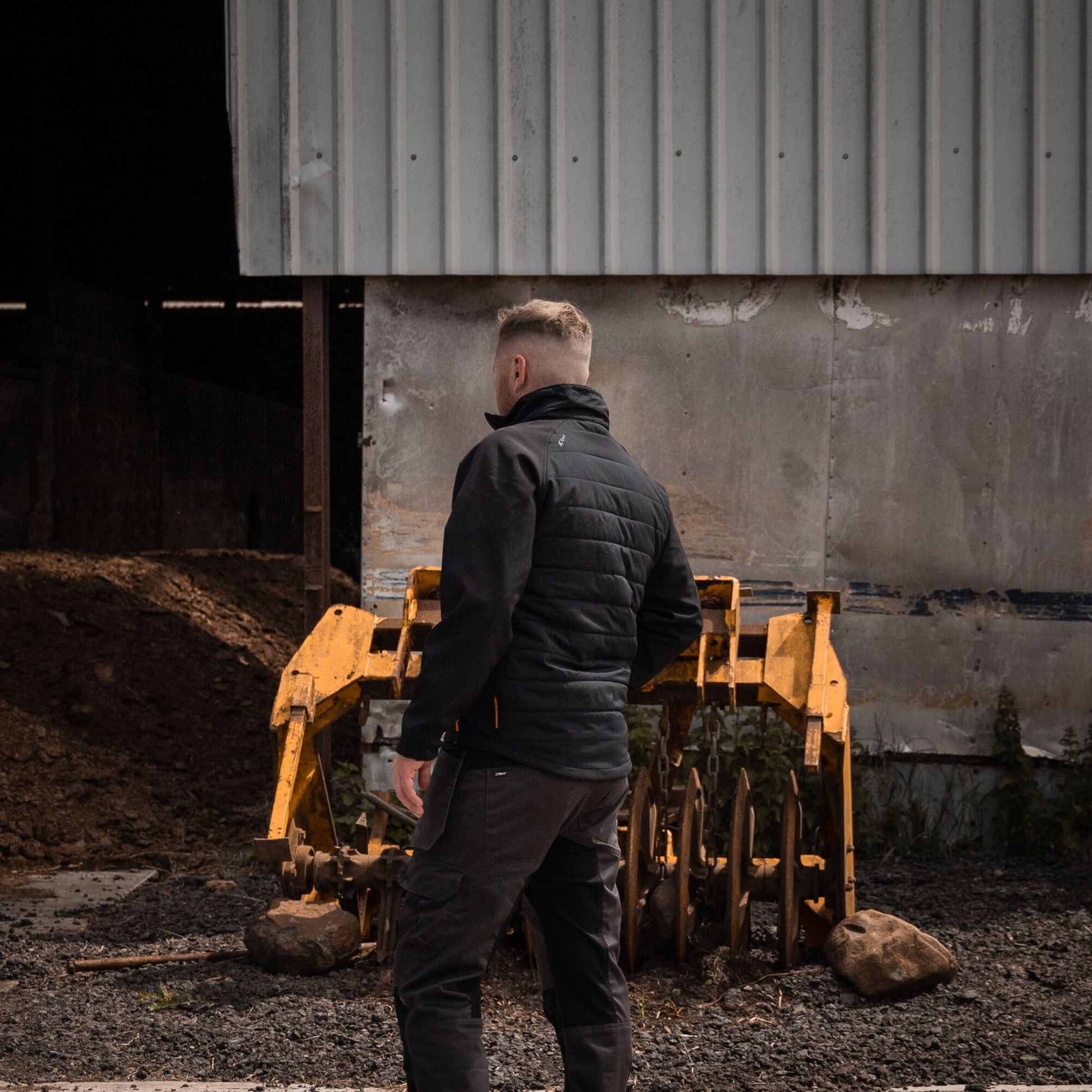 - Cosy Softshell sleeves and side panels with fleeced inner and collar lining